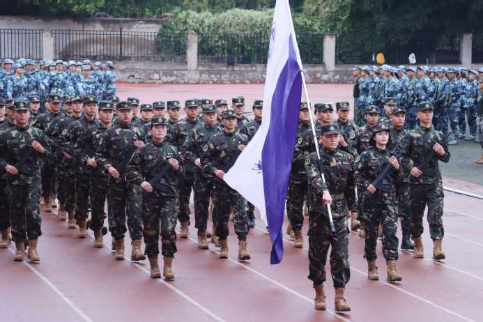 参训学员迅速变换队形,依次呈现出“NWNU”“1902-2025”“知术欲圆 行旨须直”等字样和心形图案,广大同学以青春之名,向走过123年历程的母校深情告白,将校训精神内化于心、外化于行,以赤子之心彰显“爱心师大”的深厚情怀与荣校担当。